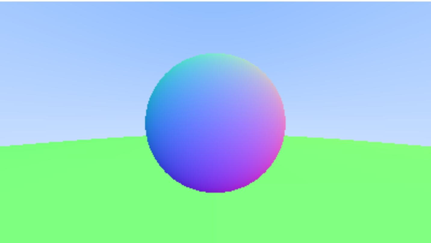 Now that we have a ray that shoots from the camera position in the direction of the pixel coordinate on the screen space, we follow that ray through the screen and onto our scene geometry which lies behind the screen. Here, we consider that our scene consists of only spheres. After figuring out the math that's required for calculating the intersection between a ray and a sphere, we get two hit points on the sphere. Now, the code just returns one hitpoint which is hardcoded, but the hitpoint where the normal at the hit point makes a negative cosine with ray dir should be considered. When a hit occurs, information about the place where the hit occured is stored in a struct(or an object) and returned to the caller of the intersection. This information includes the distance of this hit point from the pixel, the normal at the point of hit, the parameter t used in the parametric representation of the ray, the material of the object that it hit, if the face it hit is a front face of not (can be determined by dot pdt too), etc. This information is defined as the developer sees fit (Now DirectX12 handles this differently but that's a topic for another post).